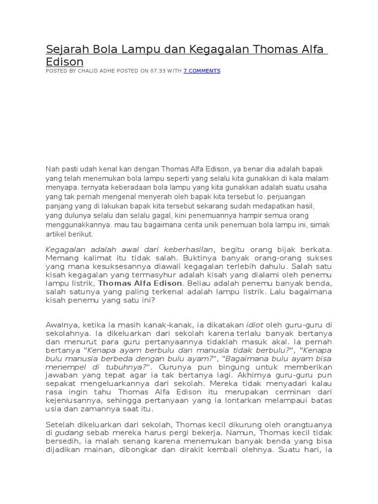 Namun hanya sebagian orang saja yang mengetahui siapa penemunya dan bagaimana kisah hingga menjadi lambang kebanggaan negara ini. Kejadian yang bersejarah tersebut disaksikan di muka. Thomas alva edison adalah salah satu tokoh yang memberikan banyak kontribusi bagi kehidupan di dunia ini, ia banyak mengembangkan banyak peralatan yang dibutuhkan di dunia ini salah satunya benda yang ia temukan adalah bola lampu terbitnya matahari di malam hari. 11 mei 201610 mei 2016 oleh agus sugiyanto. Britannica.com thomas alva edison dan penemuan lampu pijarnya.